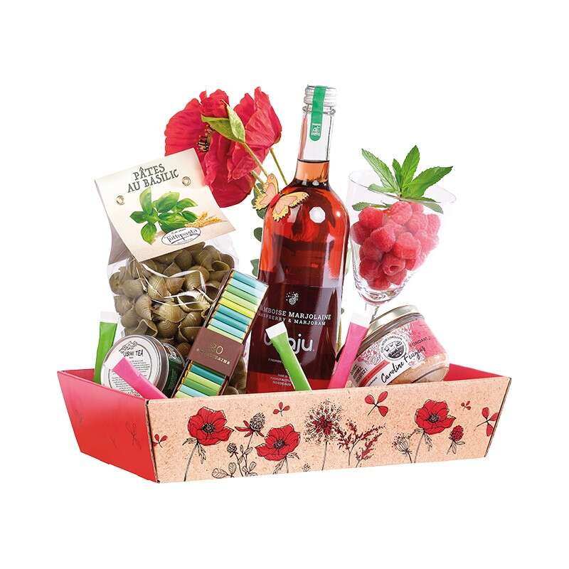 Corbeilles élégantes au motif floral rouge, idéales pour composer de beaux coffrets cadeaux et présentations raffinées.