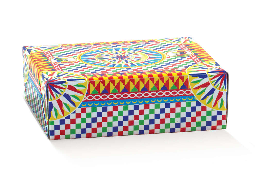 Coffret cadeau aux motifs géométriques colorés, inspirés des décors traditionnels méditerranéens.