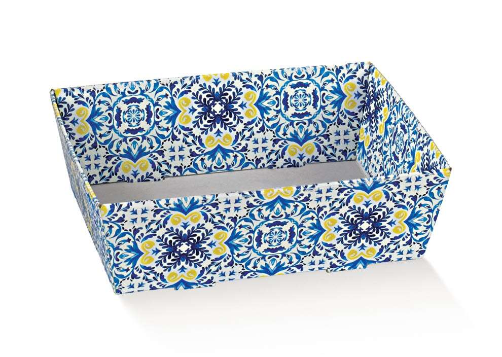 | S-100030S | Corbeille Rectangulaire Motifs " Maioliche " 29x21x9cm | Bleu |