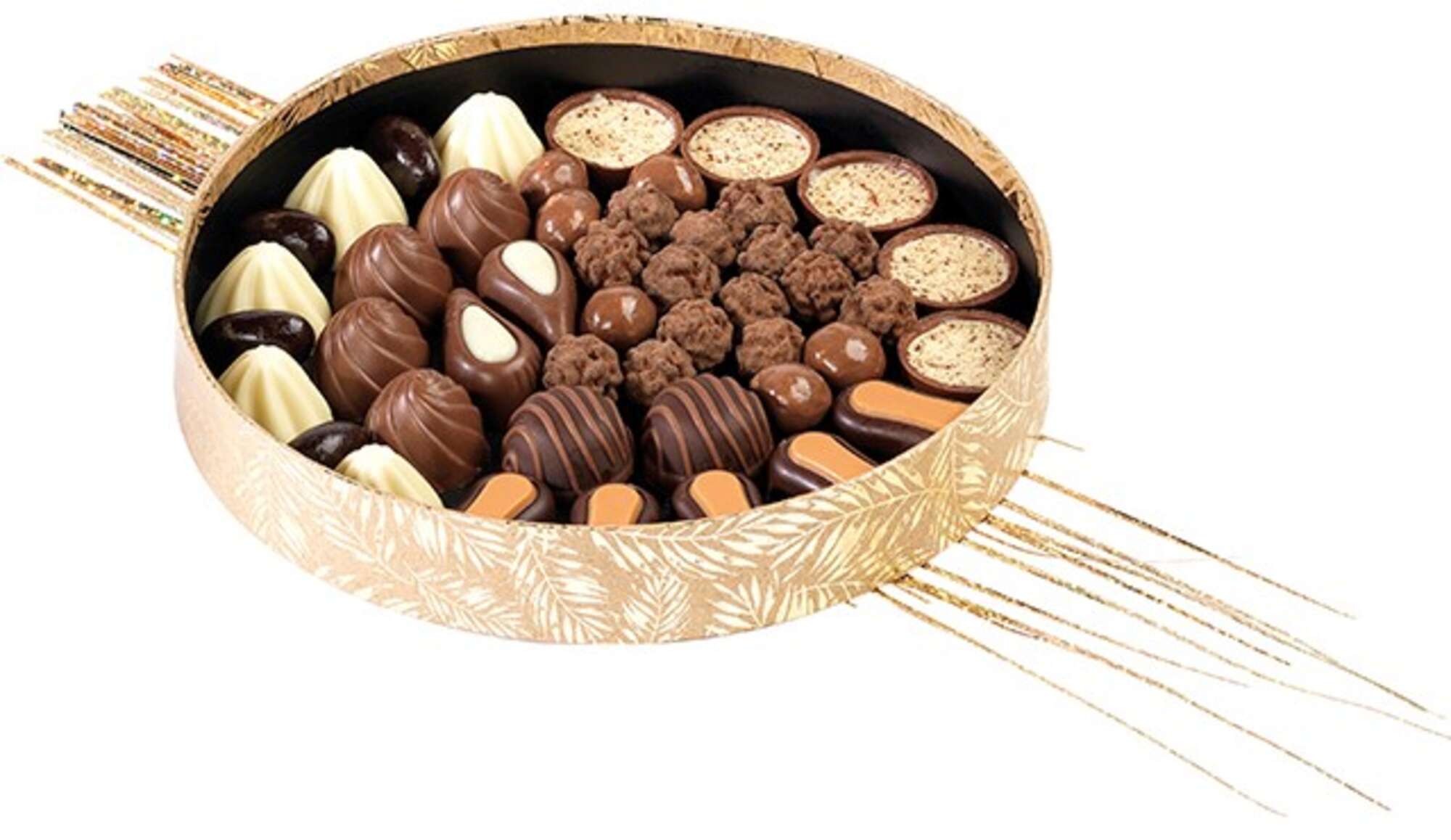 Ses dorures à chaud et ses détails mettent en valeur les confiseries sucrées des chocolatiers.