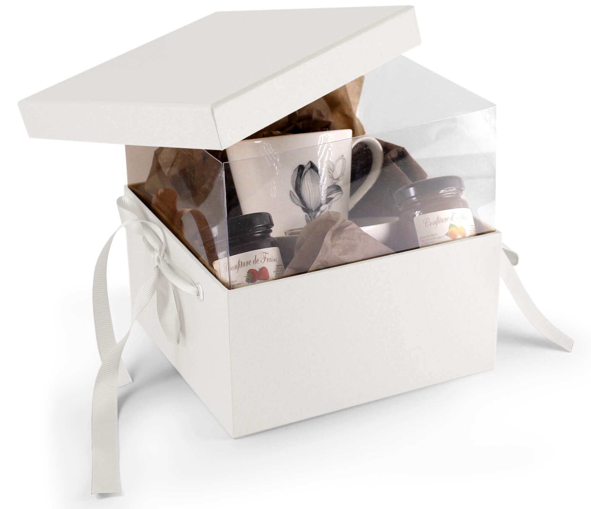 Boites luxes avec fenêtre pour laisser voir les produits qui se trouvent à l'intérieur