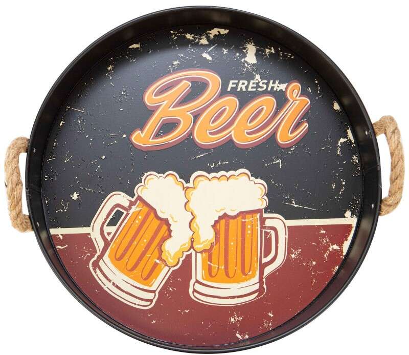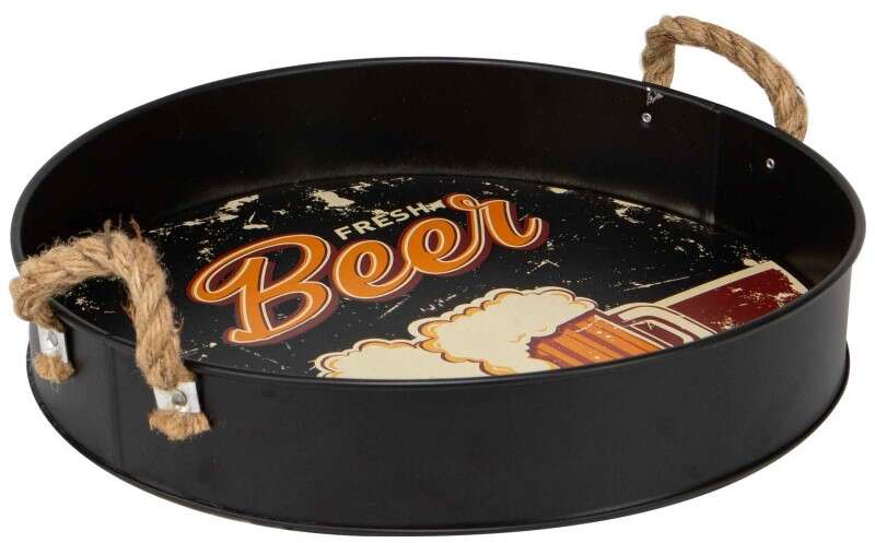 | DEF-ME0022 | Plateau Métal Rond Noir "Fresh Beer" 32x6cm |