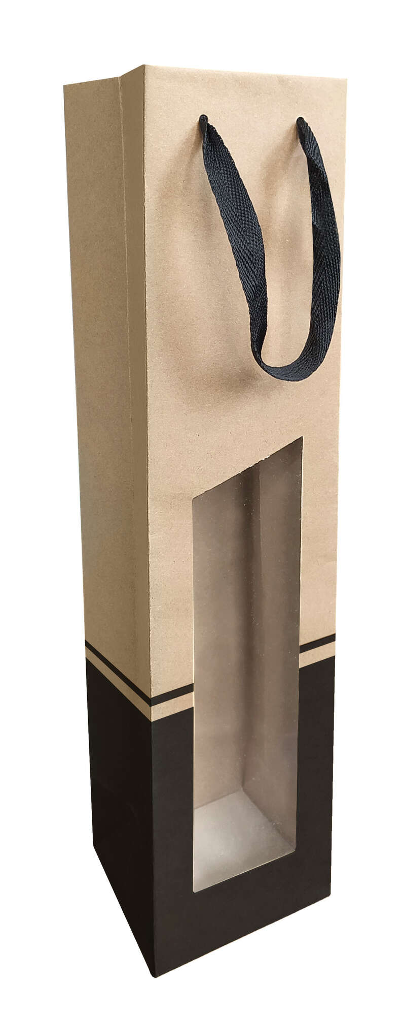 Sac 1, 2 ou 3 bouteilles – Séduction Line, conçu pour une présentation élégante et professionnelle. Fabriqué en papier de qualité 190 g/m², il est doté de poignées en coton pour une prise en main confortable. Sa fenêtre transparente met en valeur les bouteilles tout en apportant une touche raffinée. il est idéal pour les caves, épiceries fines et coffrets cadeaux.