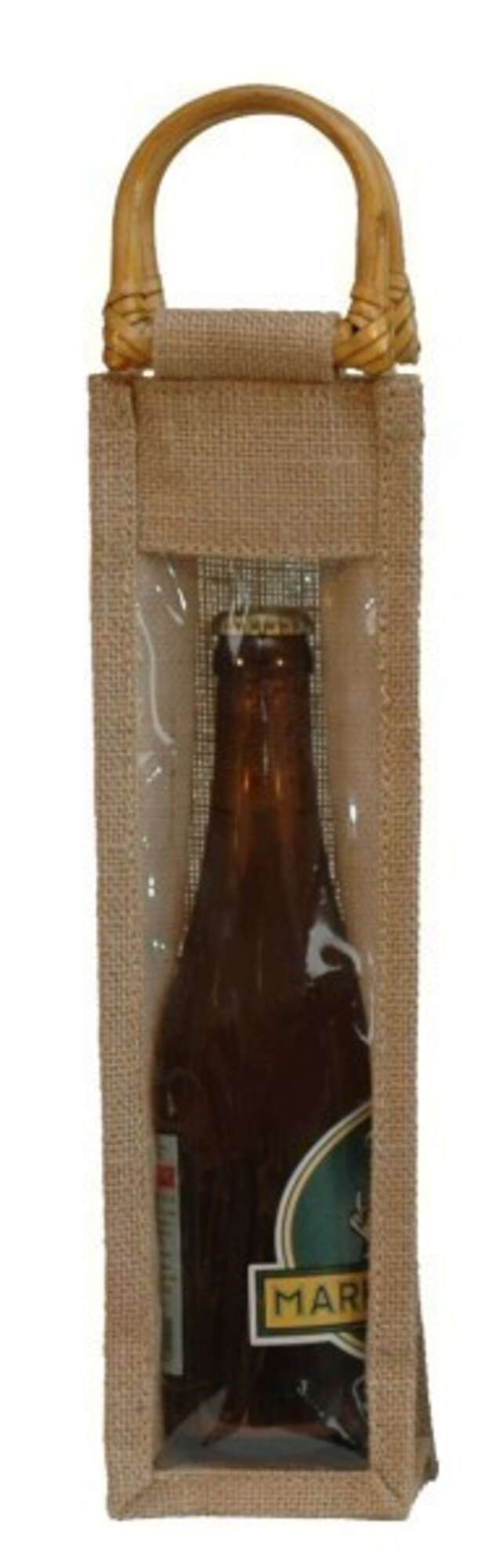 Sac jute 1 bouteille 33 cl + fenêtre LONGNECK 31x9x9cm