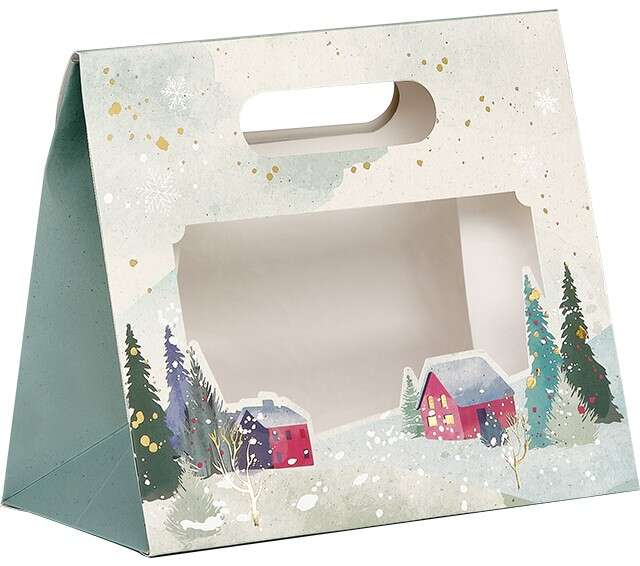Sac Papier Pochette collection " Campagne Enneigée " 20x10x29cm