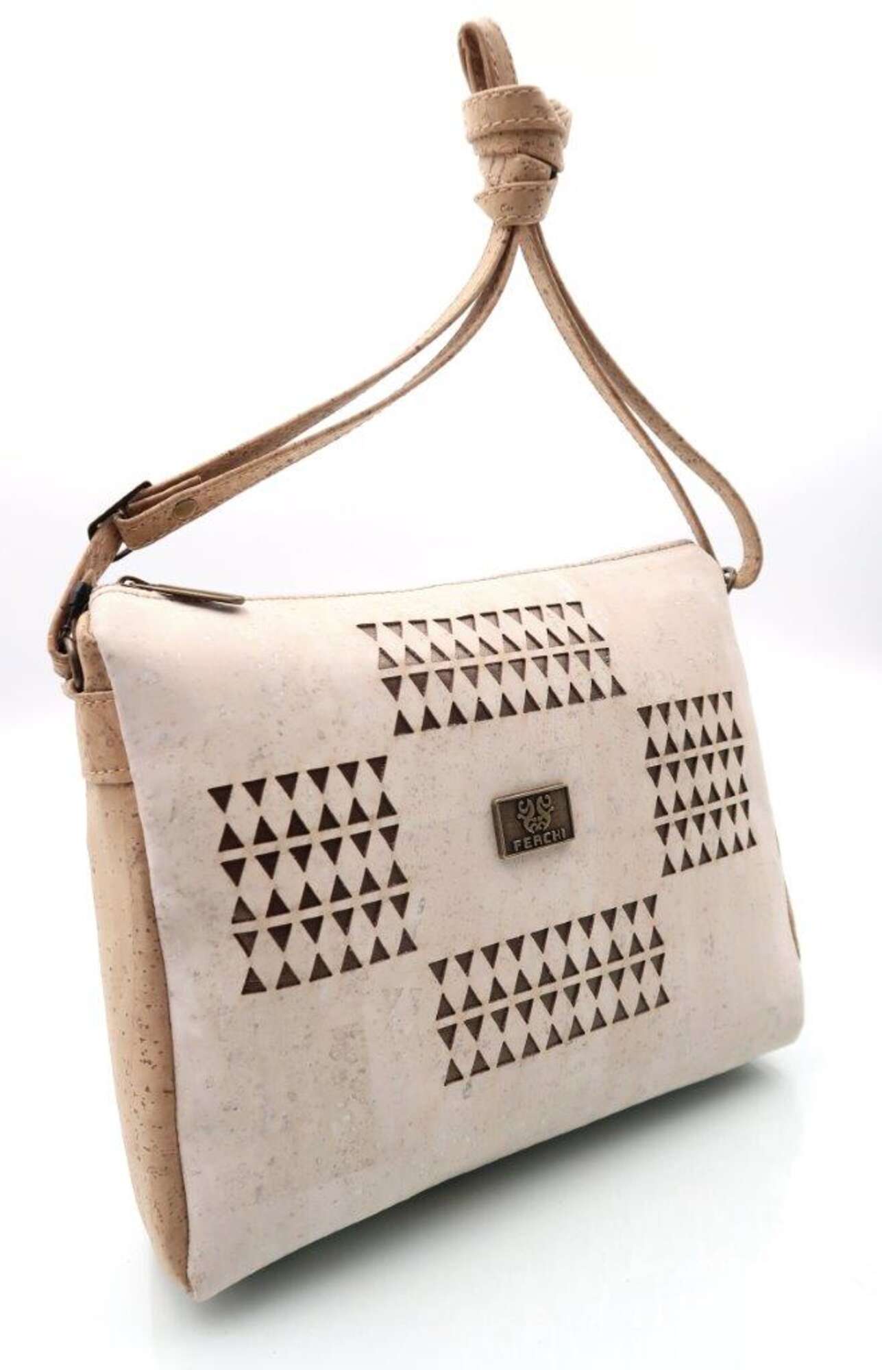 • Sac en liège avec fermeture à glissière et bandoulière réglable.