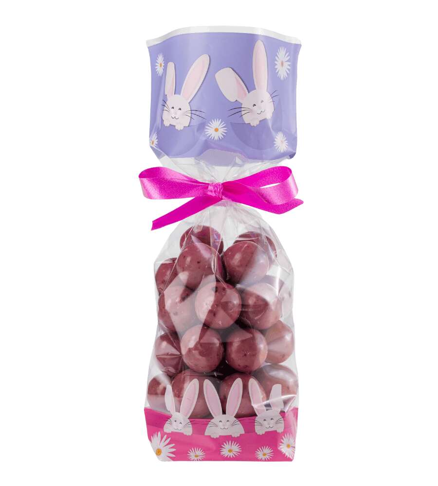 Le sachet Lapin joyeux est idéal pour vos confiserie et chocolats de Pâques, Son motif enfantin et ludique se marie parfaitement avec les produits de Pâques. Le fond rigide améliore la stabilité de l'emballage.