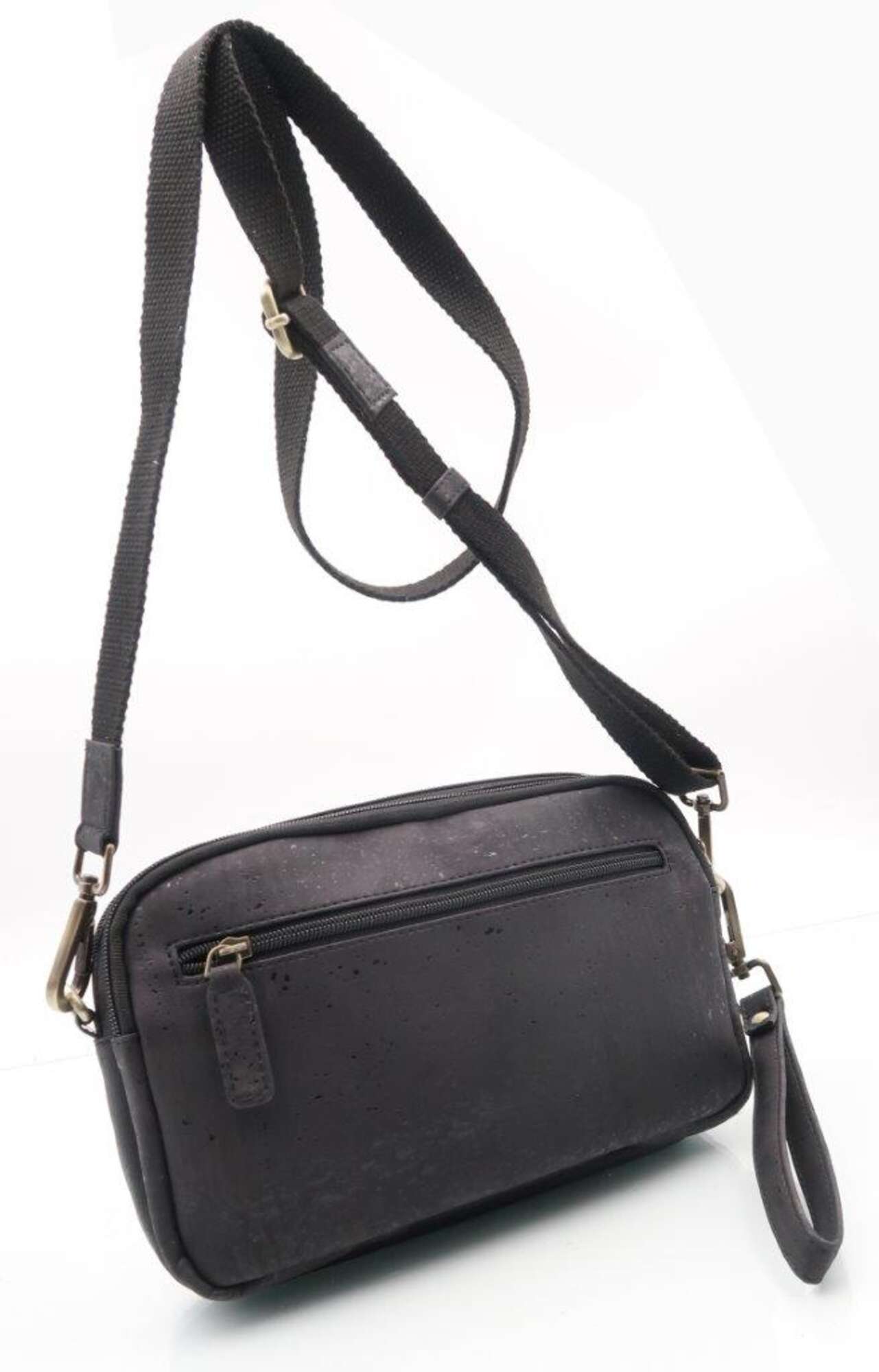 • Double compartiment zippé. Poche intérieure zippée dans l'un et poche pour téléphone portable dans l'autre avec tirettes en liège.