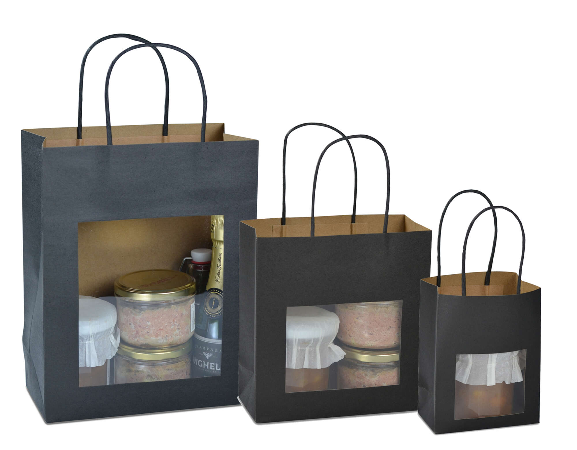 | G-21019 | SACS VITRINE KRAFT avec fenêtre 11,5+6,5x14,7cm | Noir |