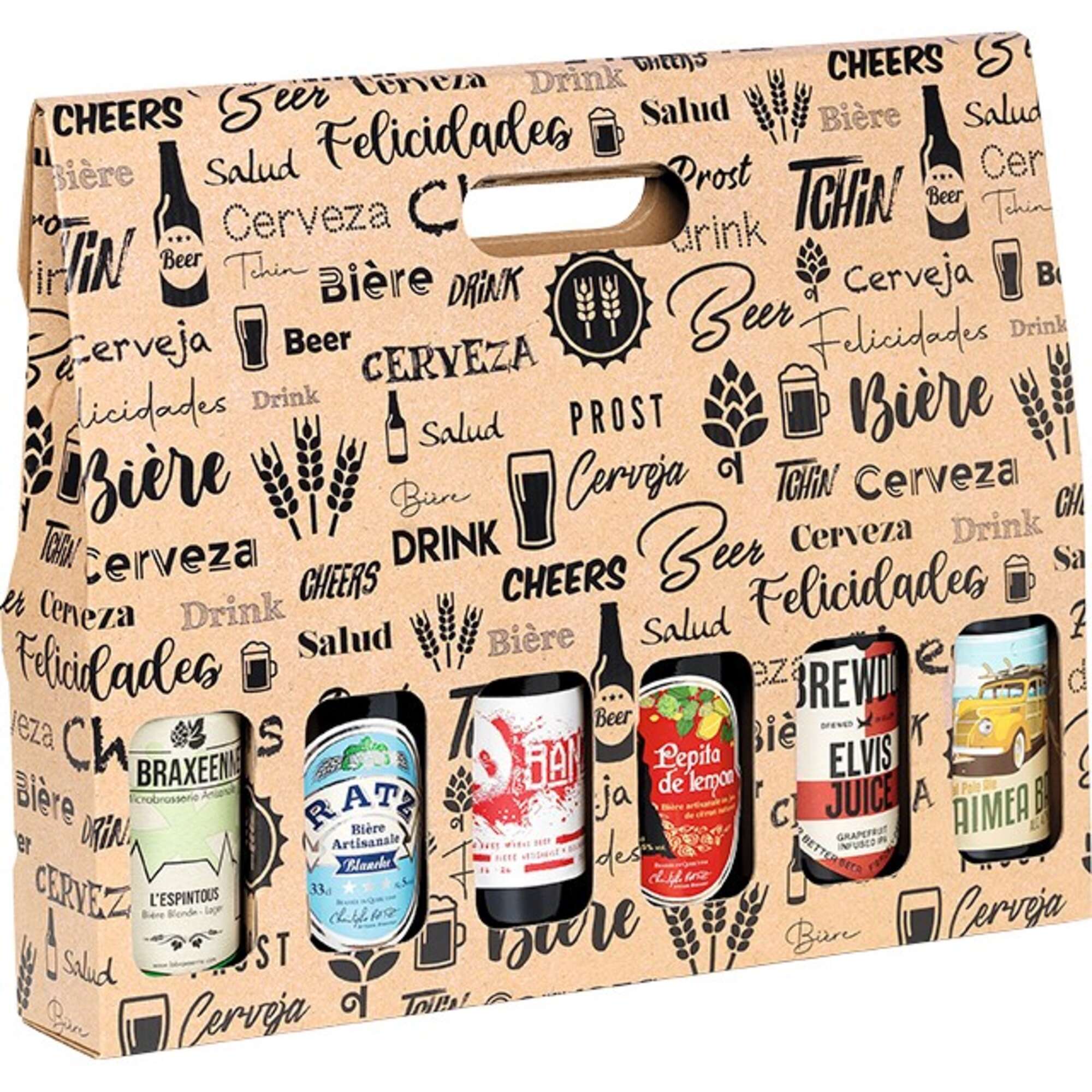 Valisette carton 6 bières long neck décor noir poignée 37.4x6x28.4cm